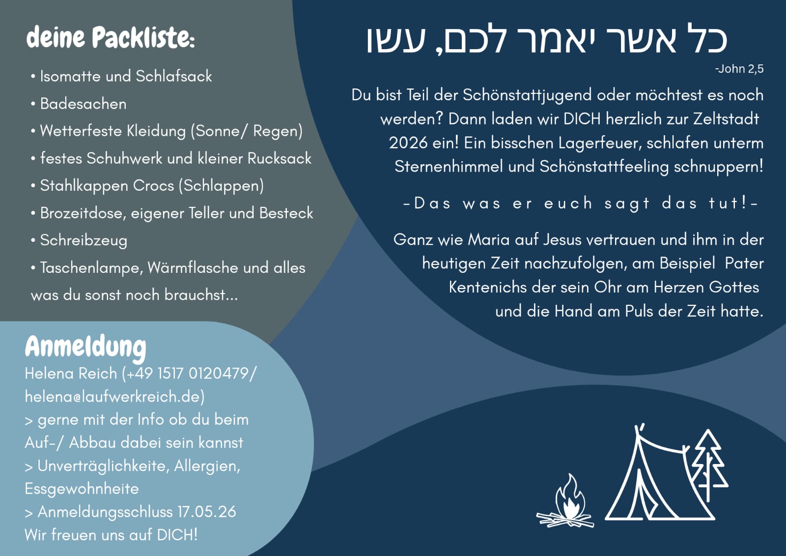 Zeltstadt | für Jugendliche und junge Erwachsene ab 16 Jahren | mit Helena Reich und Team | Flyer Seite 1 zum Download | Flyer Seite 2 zum Download | Anmeldung