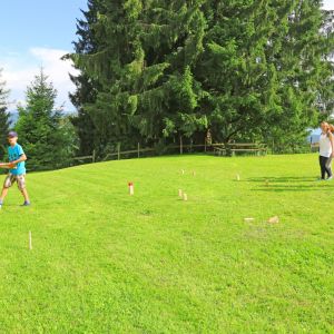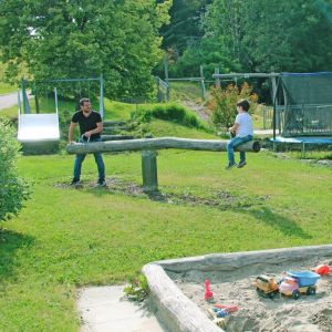 Die Spielwiese kann für Ball- und Fangspiele genutzt werden. Im Winter wird der angrenzende Hang zum Schlittenberg.